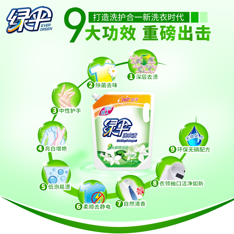 Green umbrella laundry detergent 2kg bag * 8 bags clean full-effect care color protection magnolia fragrance type