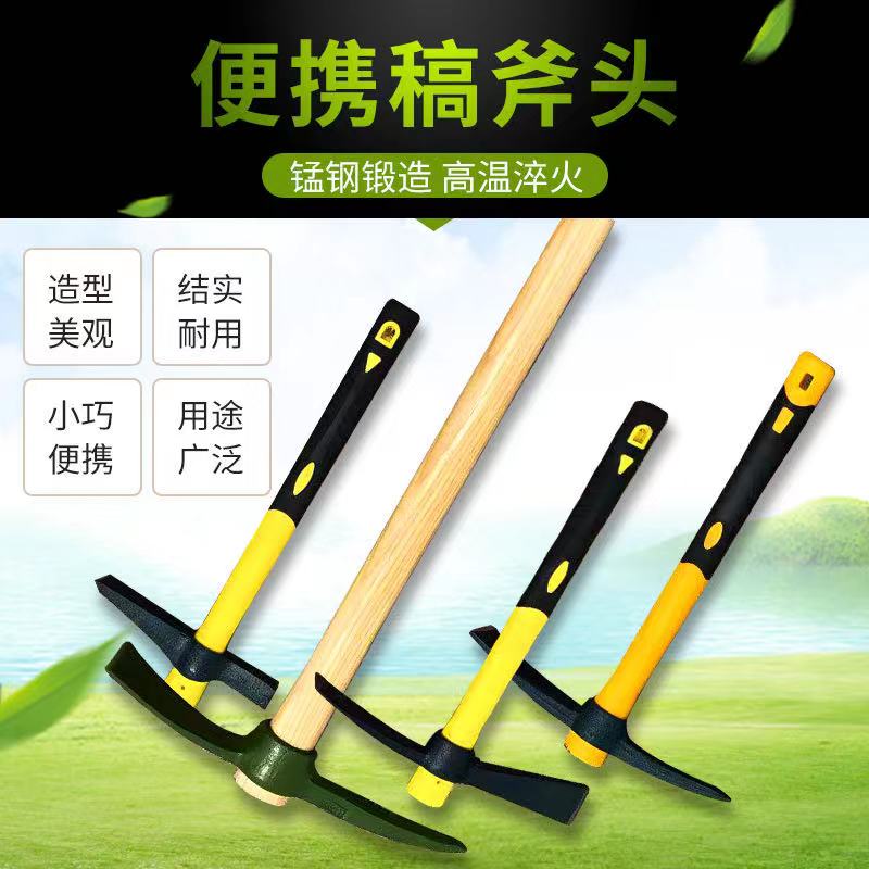 Rail steel fire pickaxe size pickaxe flood prevention preparation shovel open outdoor forging small pickaxe handle head digging pile tool