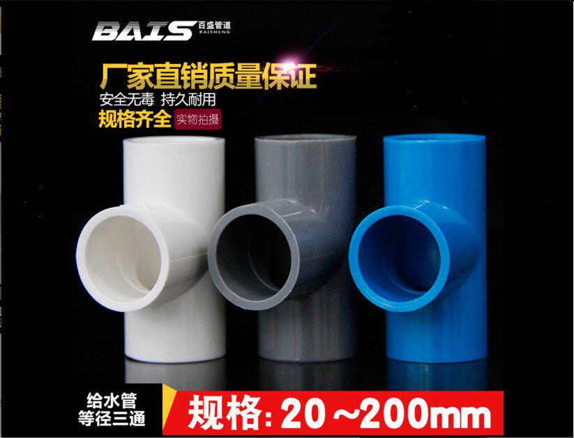 PVC water supply pipe three-way equal diameter three-way joint fittings 20 25 32 40 50 63 75 White blue gray