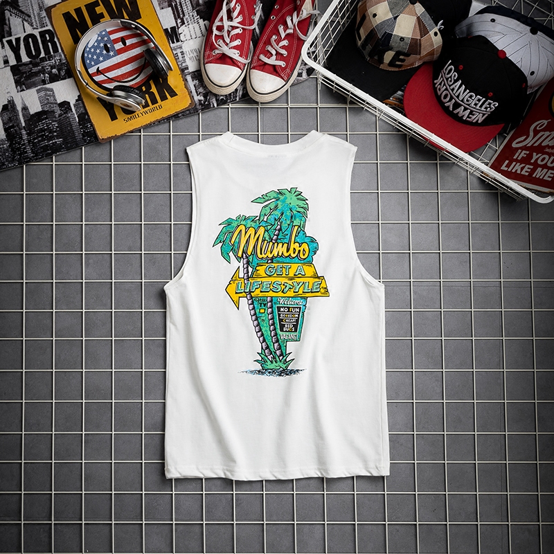 Spring and summer bottoming Hong Kong style Japanese is a seaside street fashion brand hip hop vest men loose couple sports sleeveless T-shirt