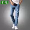 Summer thin light-colored men's jeans oblique socket bag men's soil straight tube sky blue oblique pocket light ultra-thin summer