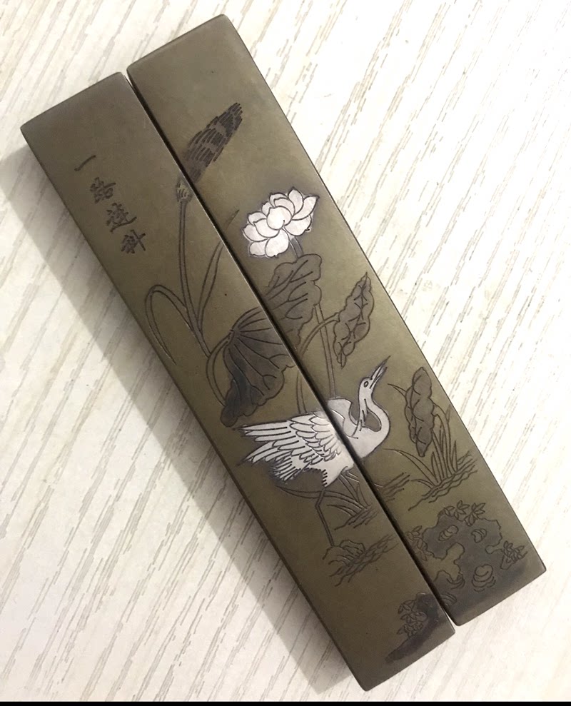 Flawless product Qingkura Wenfang Four Treasure Small Number brass Retro Town ruler Town Paper Calligraphy Supplies Ancient Play Press Ruler