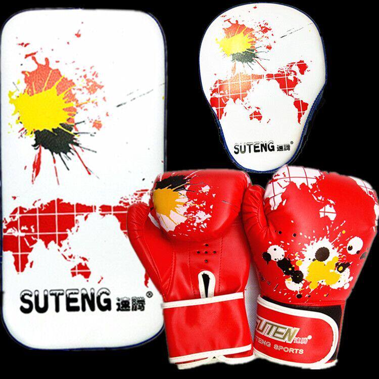 Su Teng map imitation leather training foot target Sanda curved monkey face hand target Boxing gloves three-piece set