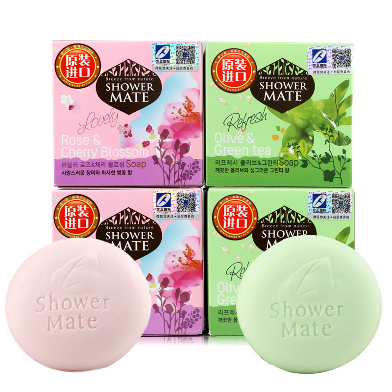 4 pieces of Korean imported Aijing rose cherry blossom Olive green tea Face wash bath Men's and women's fragrance moisturizing moisturizing