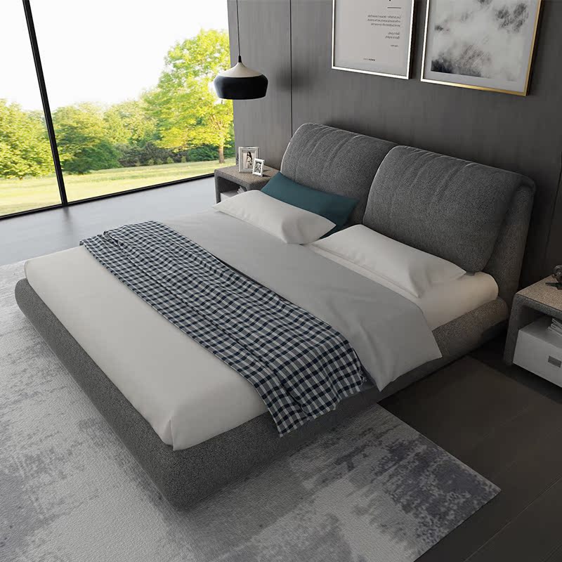 Fabric bed simple modern master bedroom double bed Nordic small apartment removable and washable soft tatami 1 8 meters storage