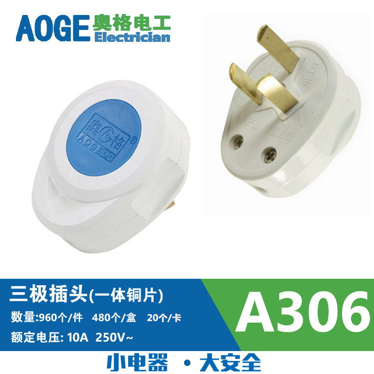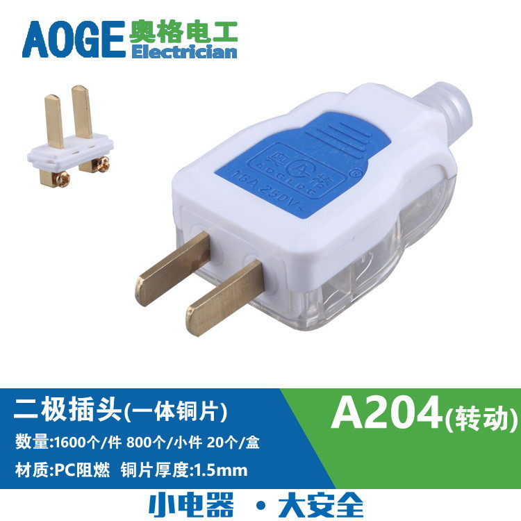 Pure copper diode flat tripod power plug cord head can be turned 250V 220V socket head