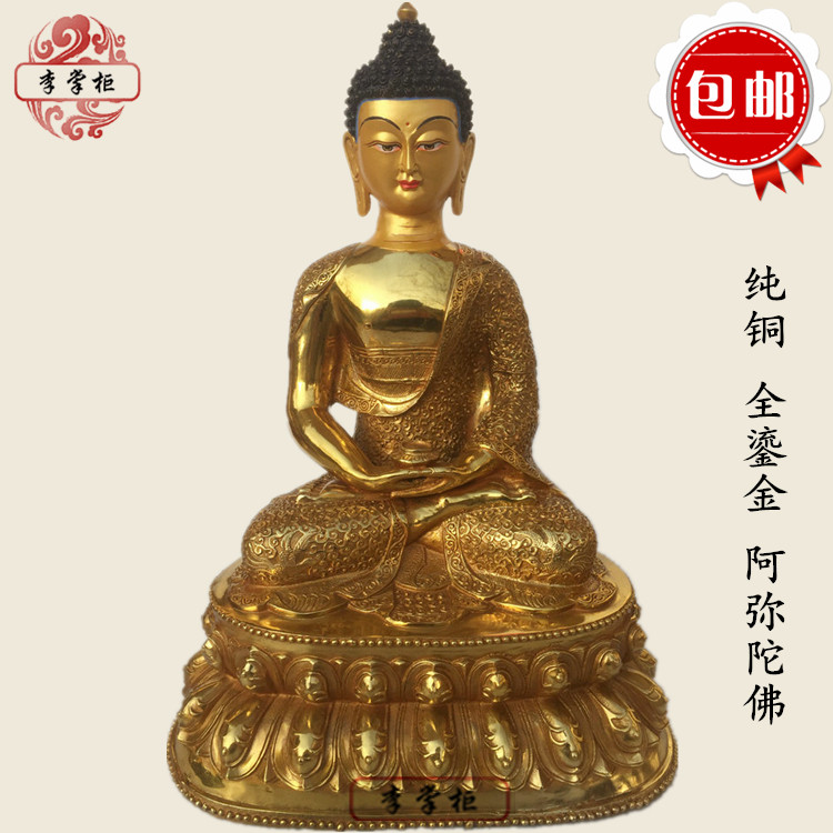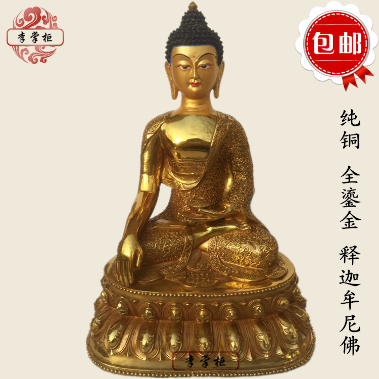 Pure copper Mizon Tibetan Zum Tripel Sakyamuni Buddha Sansei Buddha figure Buddha figure brass pendulum piece Ornament Home