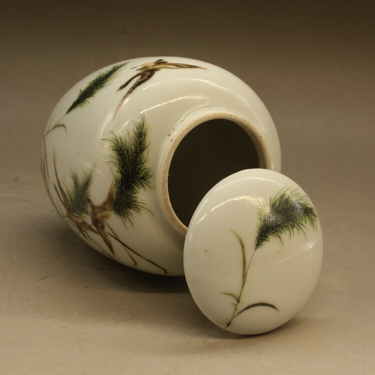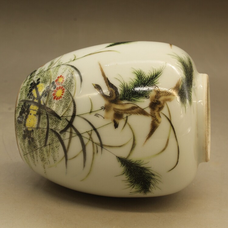 Play with jade Pink Flowers Birds Small Tea Leaves Jar Ancient Play Porcelain Antique Antique Porcelain Collection