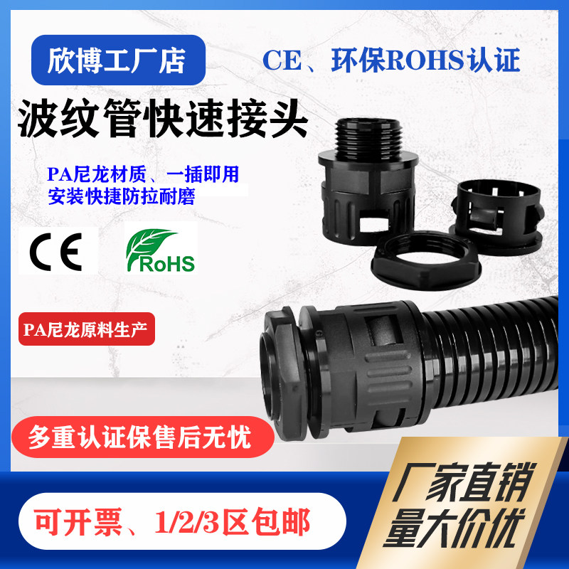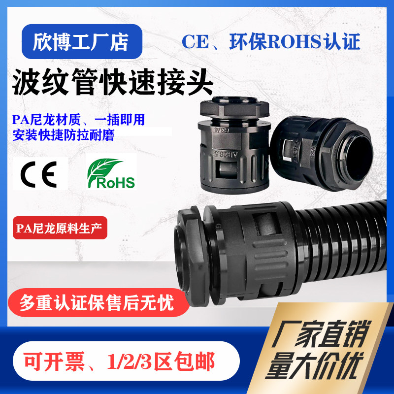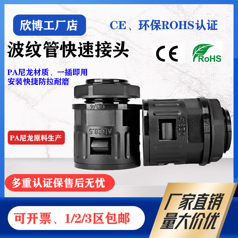 Manufacturer direct sales plastic corrugated pipe joint AD21 2PA nylon fast plug tube fixed hose quick joint