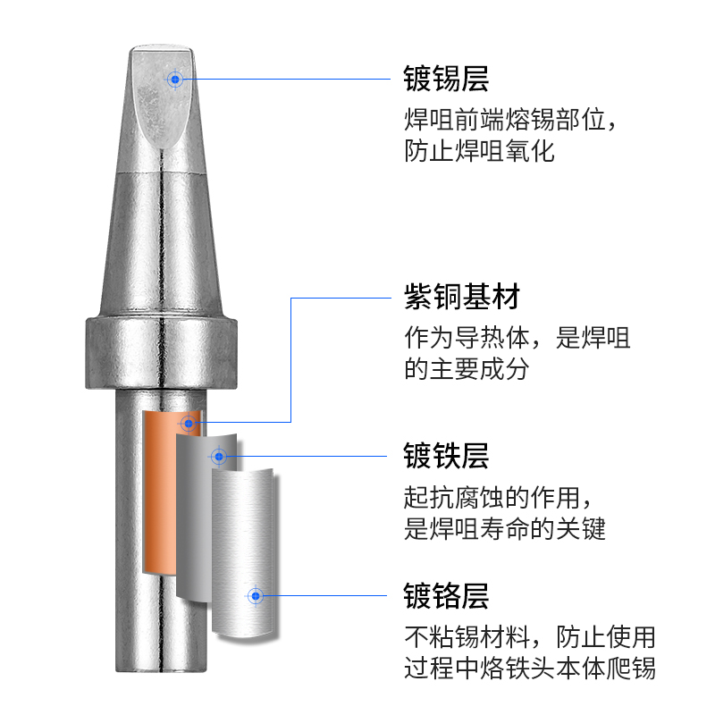 JIYOU 500 series soldering iron head 205 high frequency soldering station 150W iron soldering tip red copper electric soldering iron tip