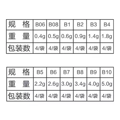 B2(4 pieces 0 9 grams) B8(4 pieces 3 4 grams) B1(4 pieces 0 6 grams) B4(4 pieces 1 8 grams) B10(4 pieces 5 grams) b9 (4 pieces 4 grams) B6 (