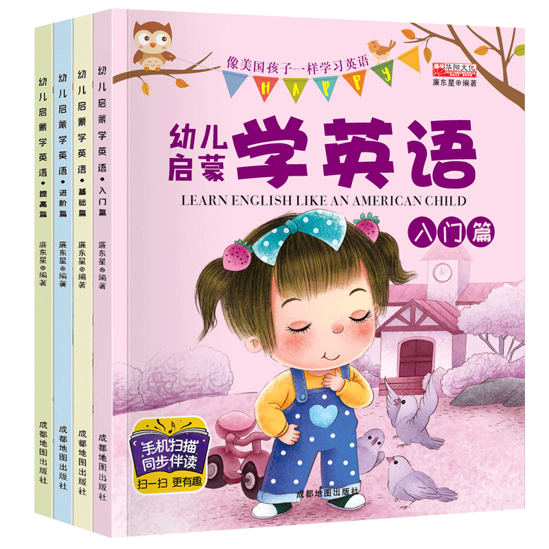 Full set of 4 books English Enlightenment Textbook for Kindergarten Children's Introduction to English Zero Basic Textbook Sound Drawing Book 3-6 Years Old Teaching English Early Teaching English Story Book Kindergarten Baby Little Connection Book
