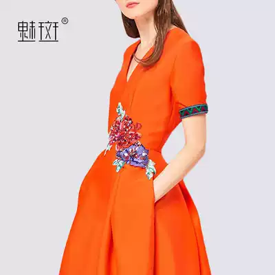 Charm spot 2021 new socialite temperament short-sleeved V-neck slim-fitting dress waist thin middle and long version of the fashion A-line skirt