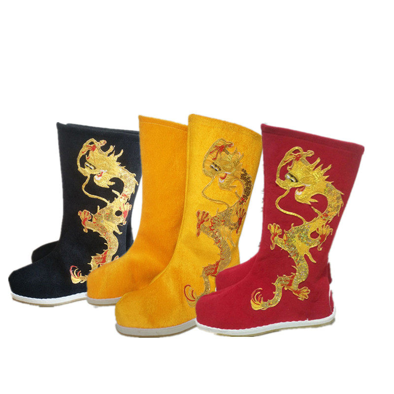Sichuan opera face-changing emperor dragon boots high-top shoes toward the boots color drama costume film and television stage costume men's shoes black and white red and yellow - Taobao