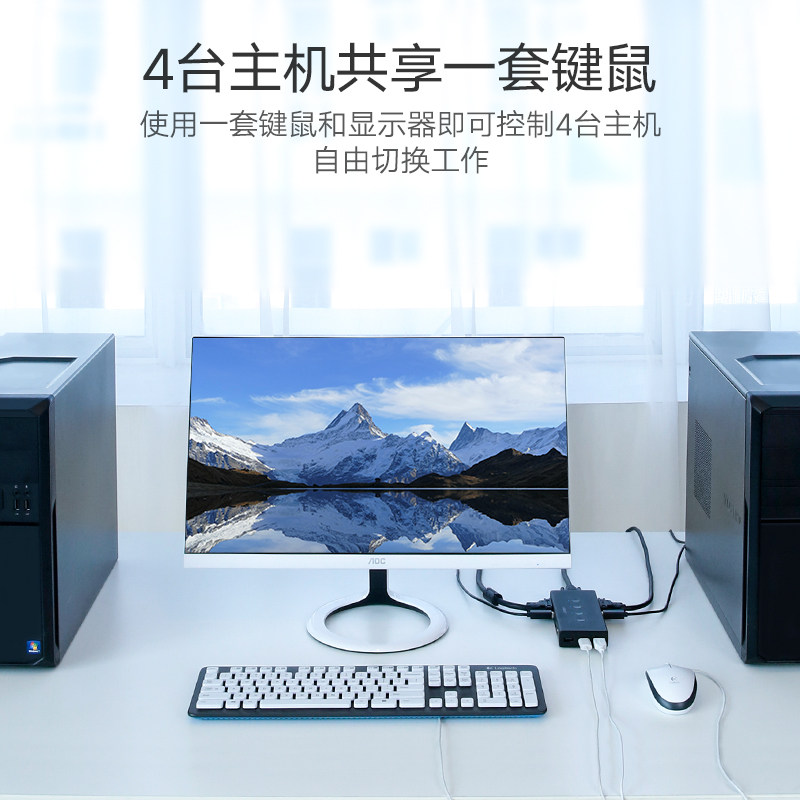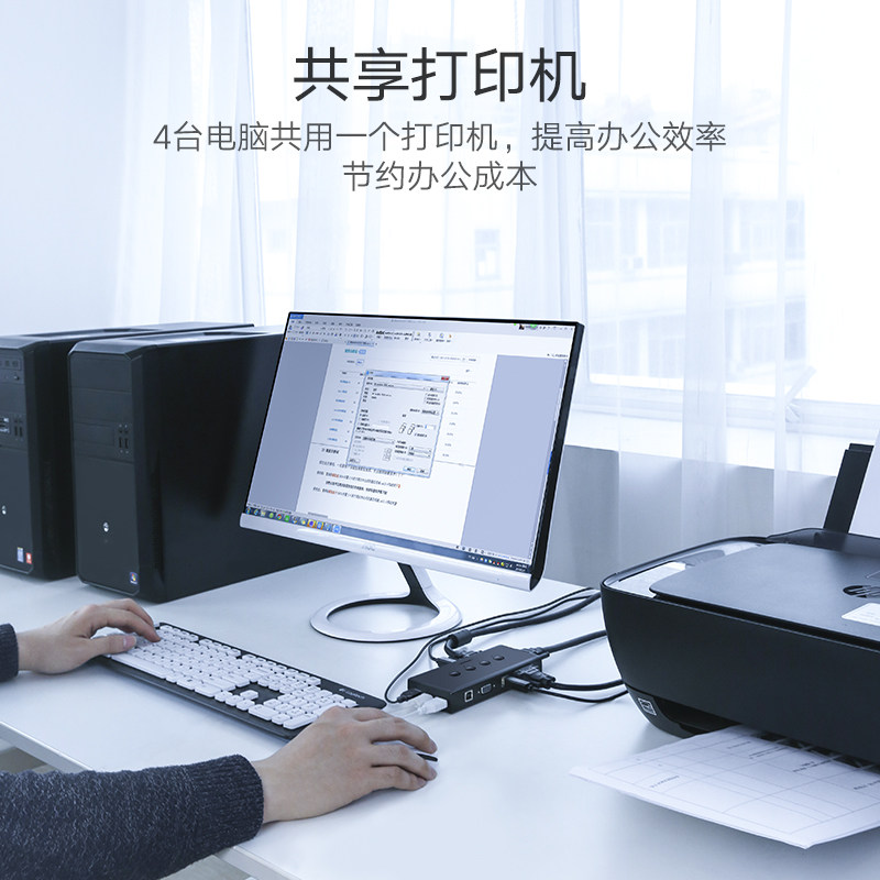 Green KVM switch VGA distribution four-in-one-out display key and mouse dnf4 port synchronous printer sharer