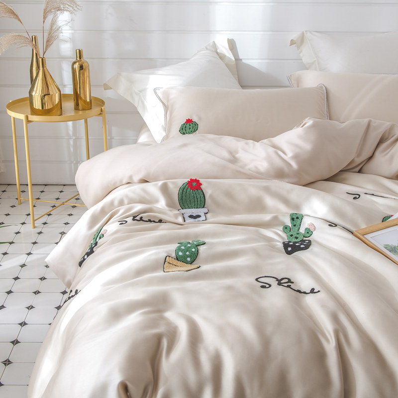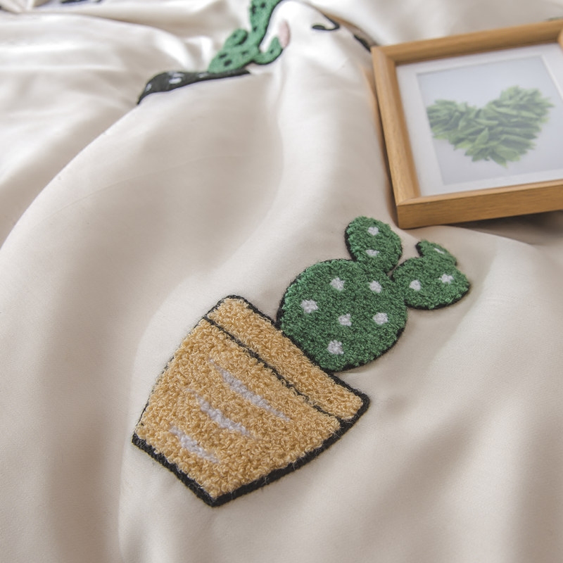 60 imported Tencel four-piece three-dimensional towel embroidery embroidery Cactus Lyocell naked bedding