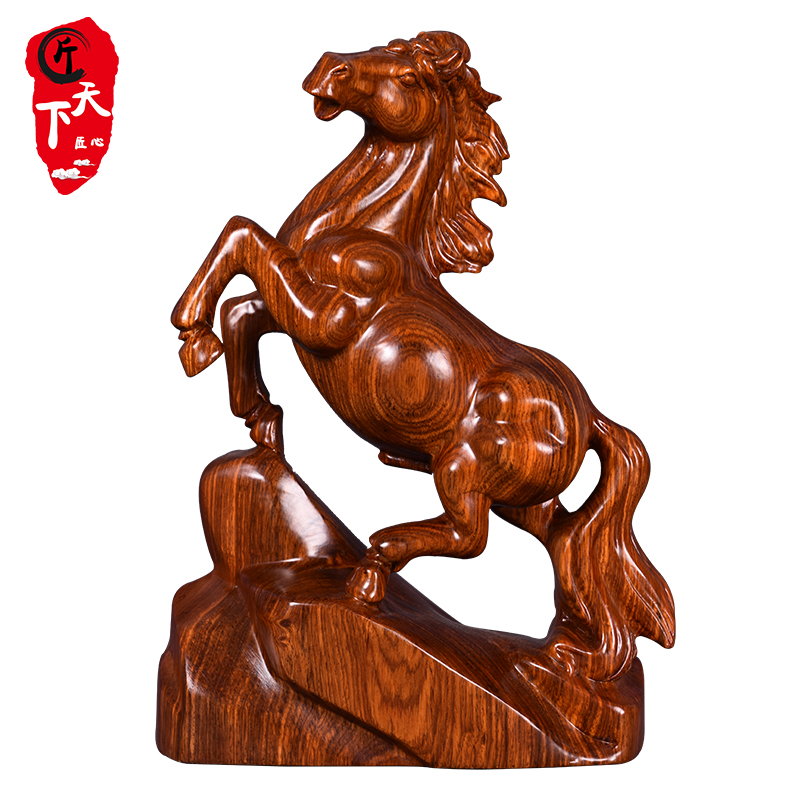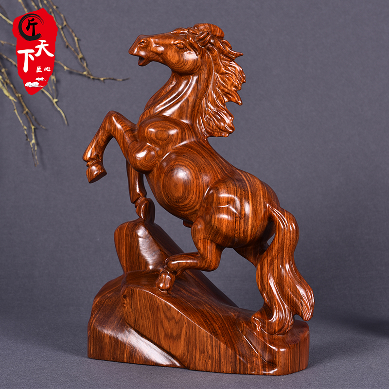 Huanghuali wood carved horse ornaments Horse to success Mahogany crafts Home accessories Office Feng Shui lucky furnishings
