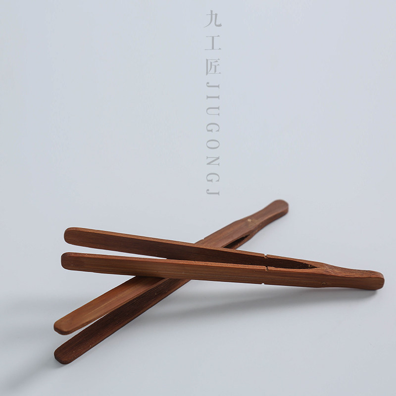 Nine artisans hand bamboo tea clamp kung fu tea parts Tea ceremony Six - gentle solid wood tweezer clamp clamp