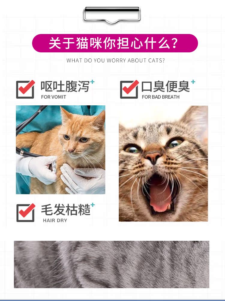 100 extraction of cat food (addition of small fish to dry) 100 extraction of young cat food (more abundant in nutrition)