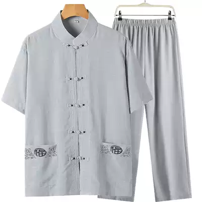 Summer Tang suit men's short-sleeved suit middle-aged and elderly summer suit dad cotton and linen old man clothes male grandfather 60-70 years old