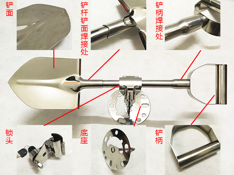 A set of silver 67cm short shovel lock base set, a set of black 67cm short shovel lock base set, a set of silver 87cm long shovel lock base set, a set of silver 67cm serrated lock base set