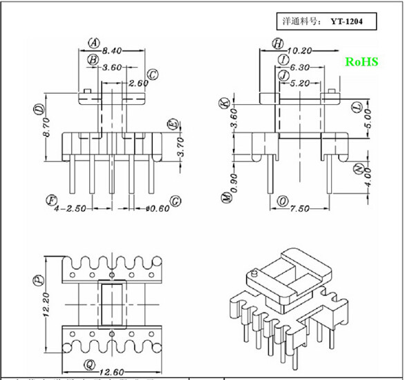 EI12 5 transformer skeleton magnetic core single tank vertical 5 5 YT-1204 ten sets of a pack
