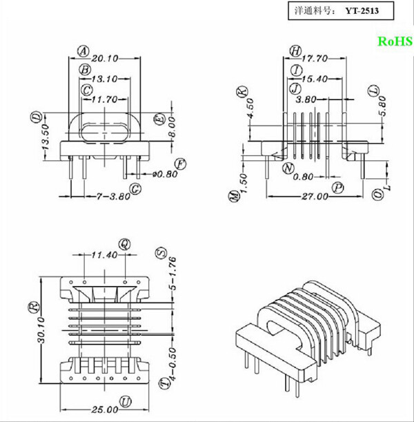 EPC25 High Frequency Transformer Skeleton Multi Groove Horizontal Straight Inserts 4 6 YT-2513