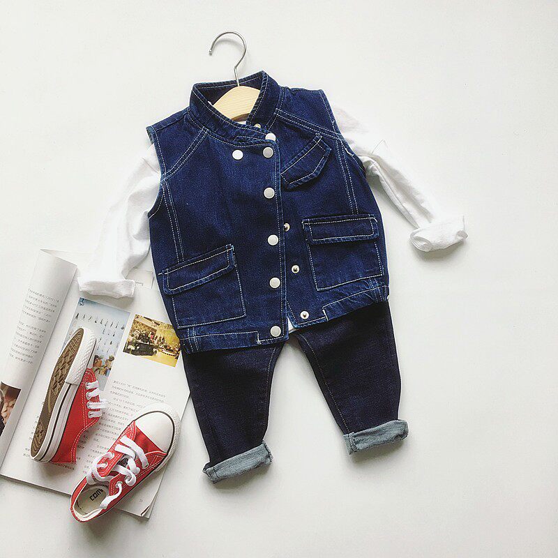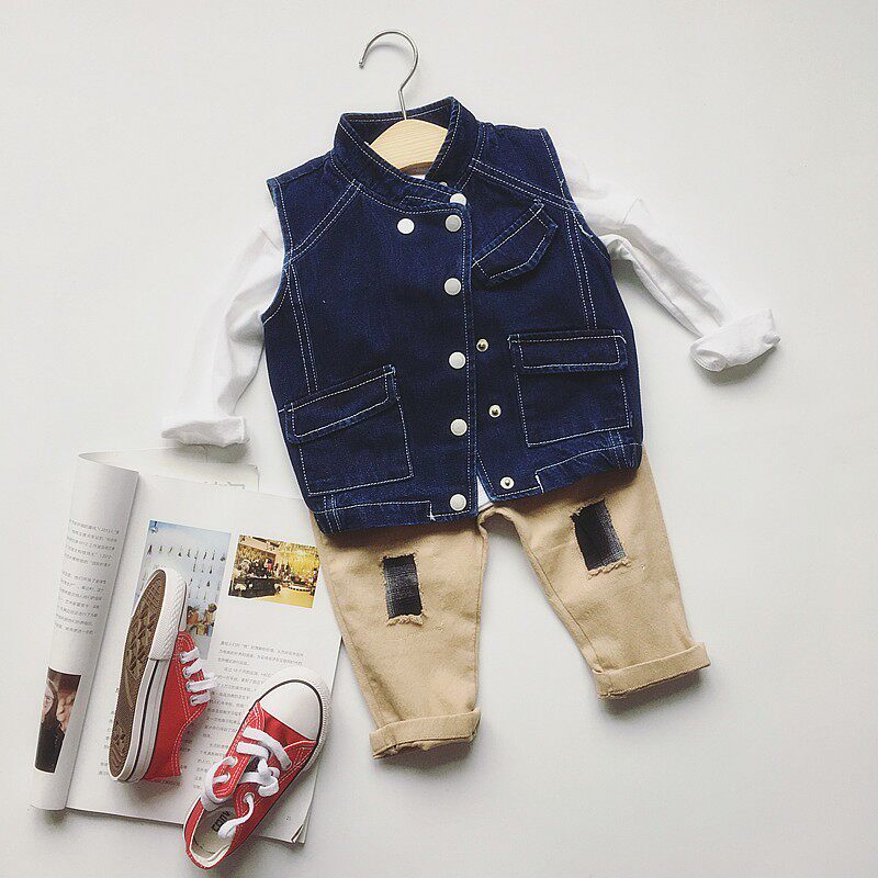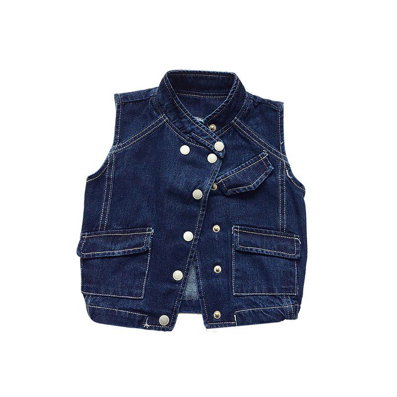 Boys and girls baby middle and small children children's casual solid color handsome motorcycle soft denim vest sleeveless top tops children's clothing