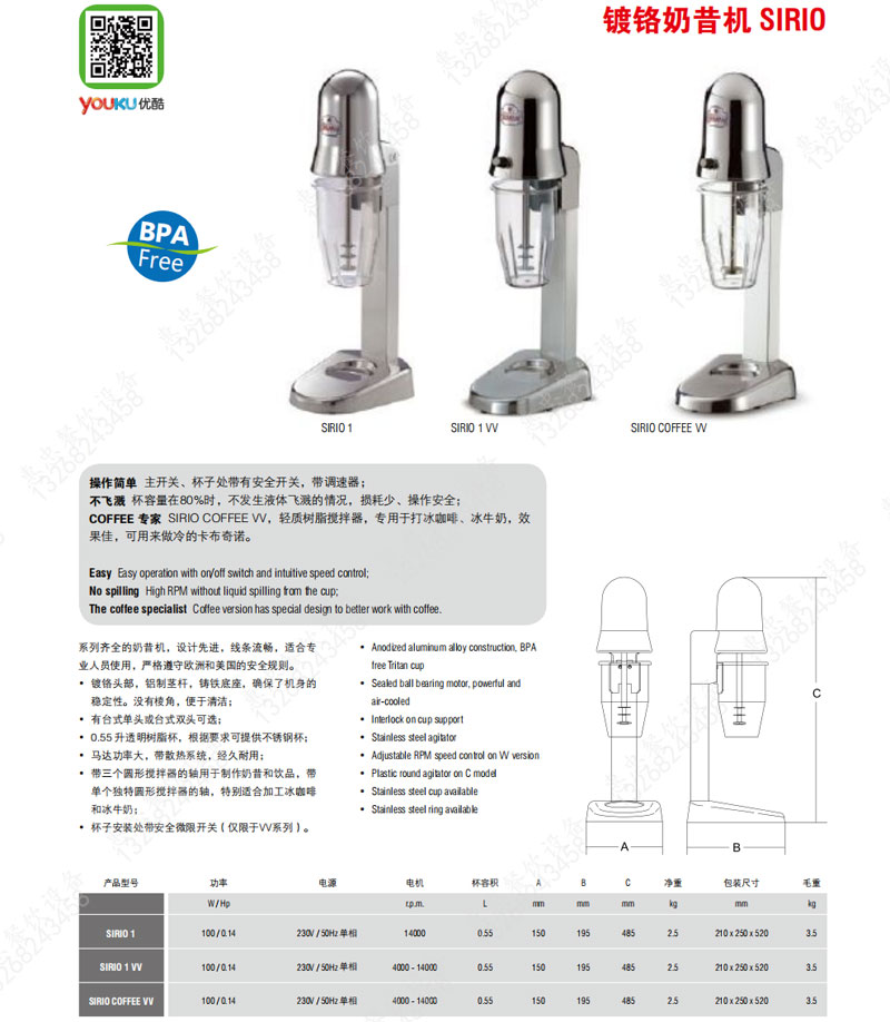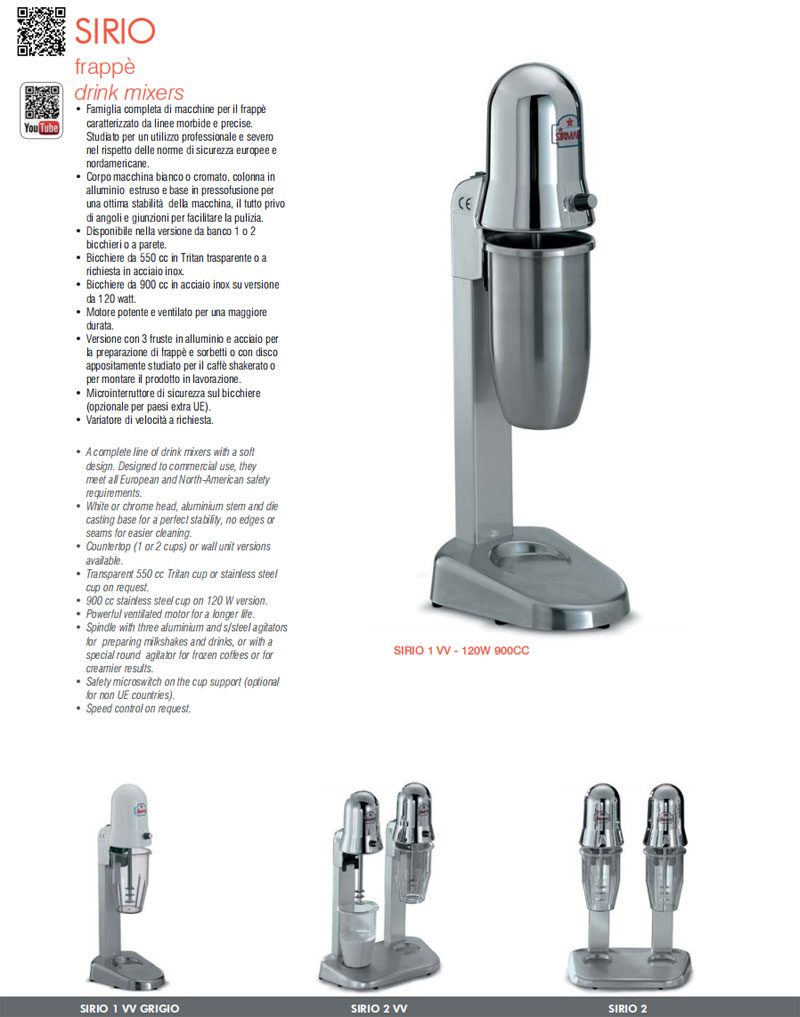 Italian SIRMAN Shuwen SIRIO-COFFEE-VV commercial iced coffee milkshake machine variable speed mixer