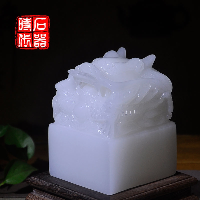 Disc Dragon Seal Seal Afghanistan Natural Jade Ornament Office Decoration of the Decorative Strokes of the Chinese Seal Dragon Seal Large