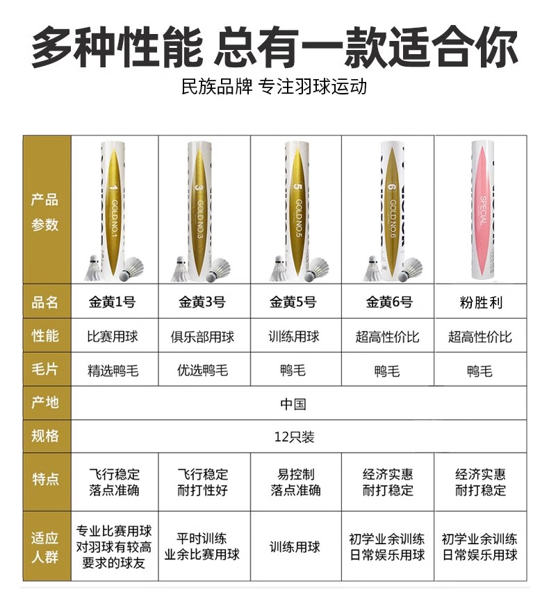 Golden Yellow No. 6 (Classic Return Professional Level) Gold Yellow No. 8 (good price-performance ratio smooth) golden yellow No. 1 (training with a ball for the ball) Golden yellow 3 (premium duck hair 90%