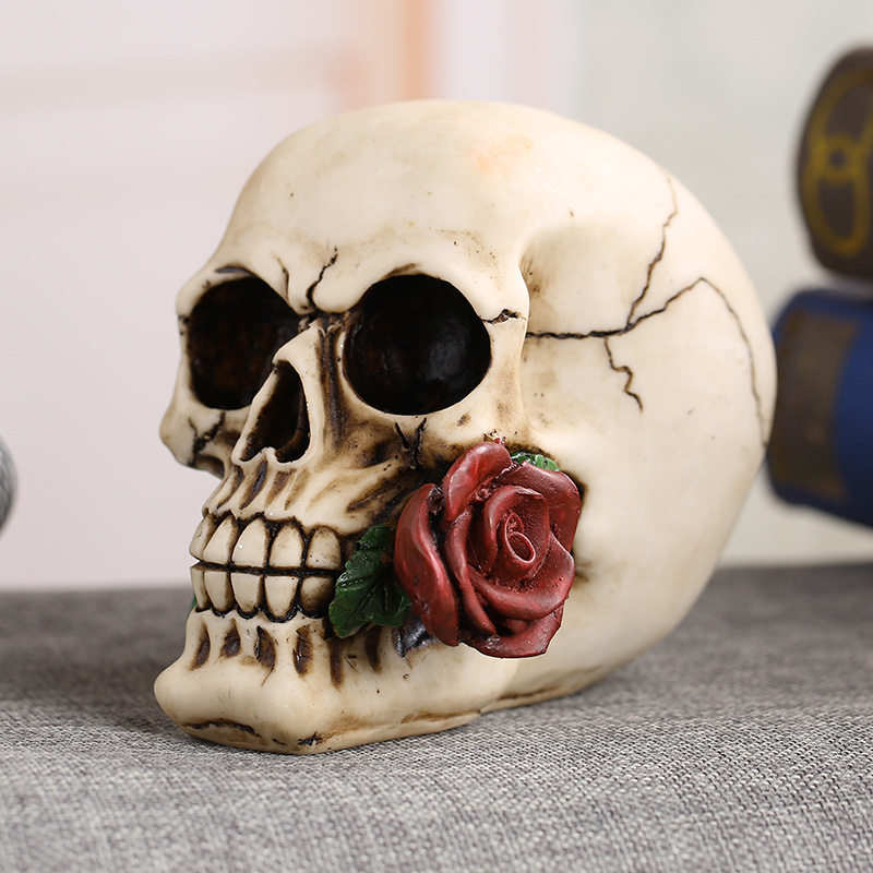 Mouth Bite Rose Skull Skull Head Personality Creative Gifts Halloween Scenes Decorative Props Fools for the whole People's props