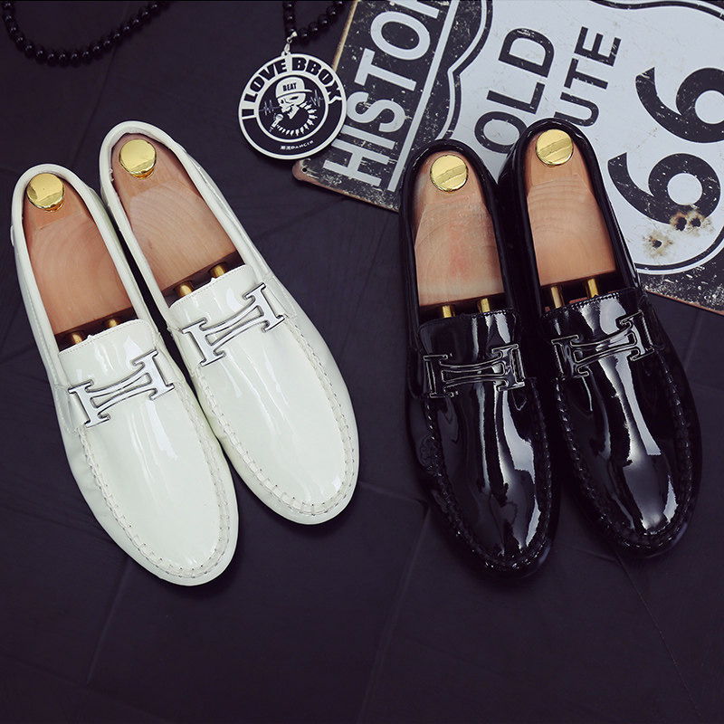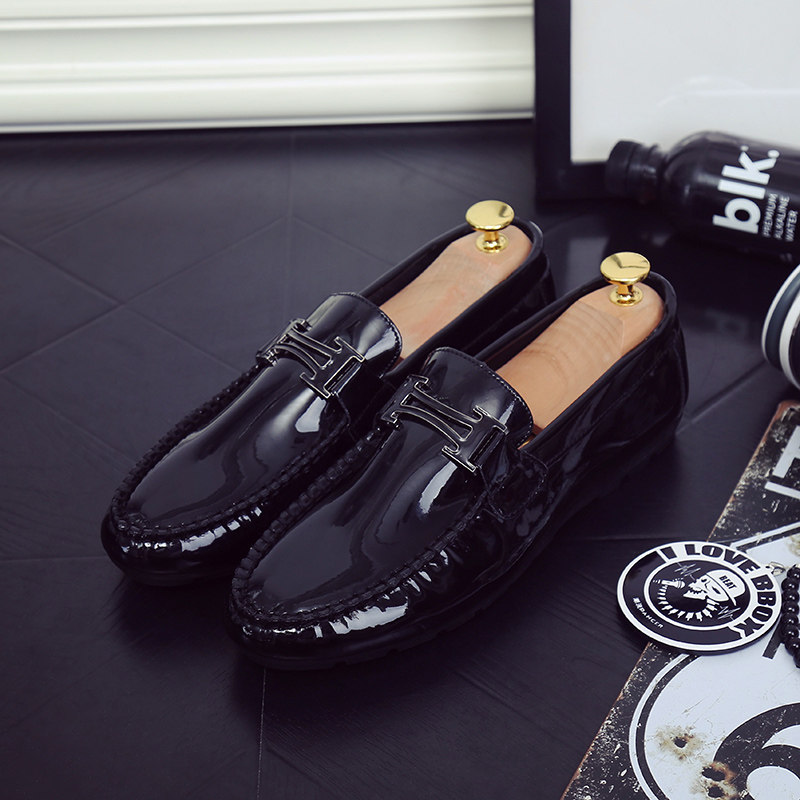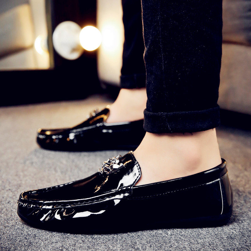 Doudou shoes men's trendy shoes British trend one-slip casual shoes spiritual society boys shoes patent leather glossy leather shoes men
