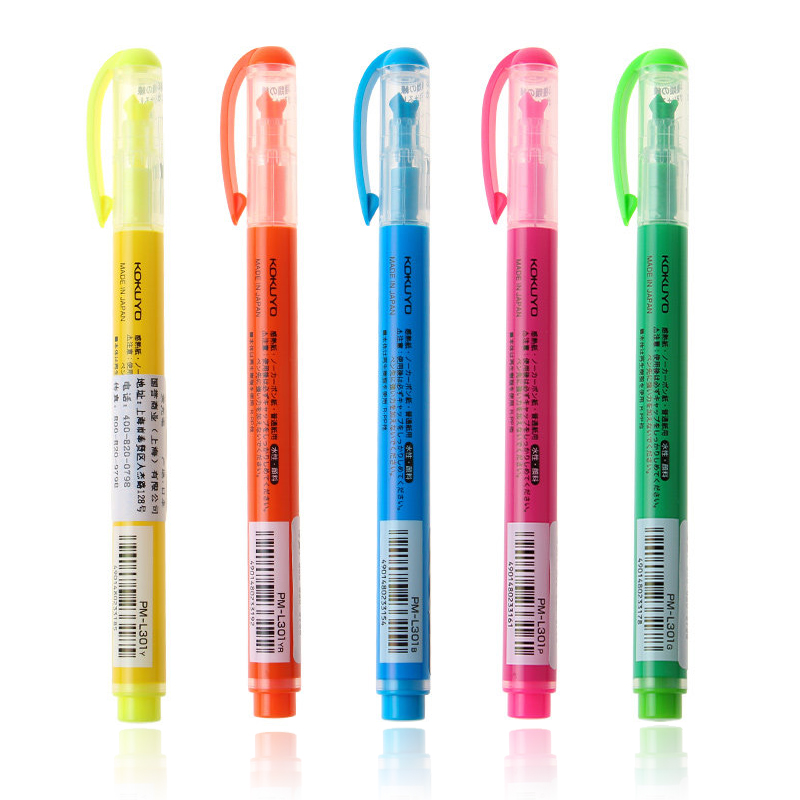 Japan KOKUYO national renowned beetle fluorescent pen student with a key marker pen multifunction mark pen color eye-catching fluorescent pen PM-L301 creative stationery hand account double-line multi-angle
