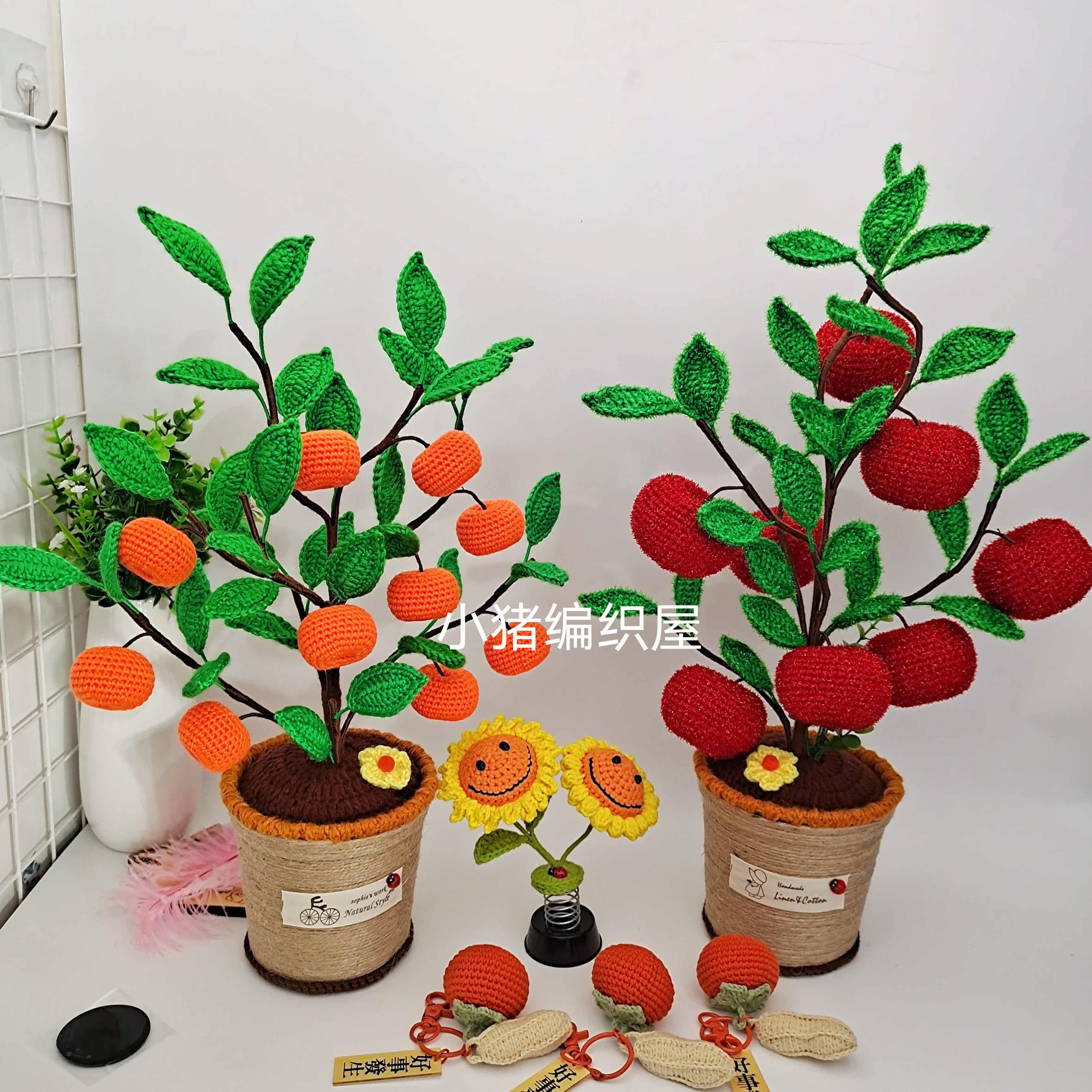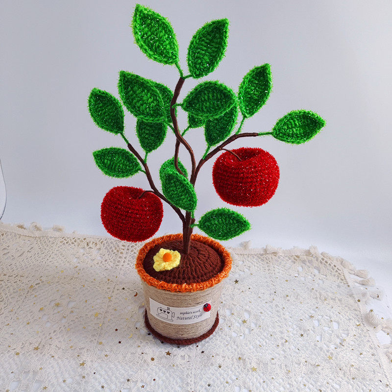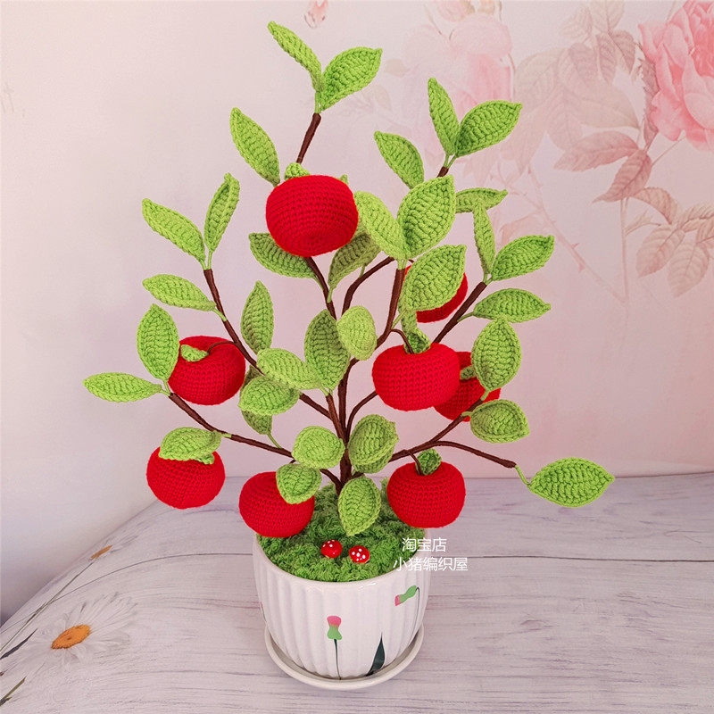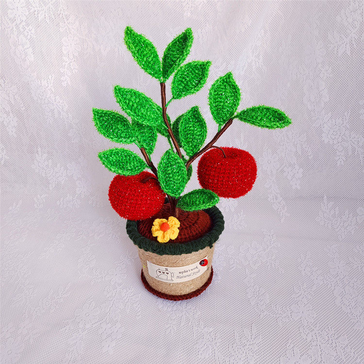 Pure Handmade Wool Thread Crochet Safe Tree Apple Living-room Modern Adornment Putting Floral Christmas Presents