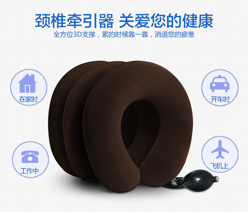 Inflatable three-layer full-duved single-tube cervical tractor for cervical vertebrae massage neck-cuff stretcher