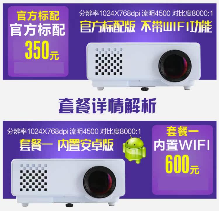 RD-810805 projector home HD 1080p Wireless wifi smart led office miniature mobile phone projection