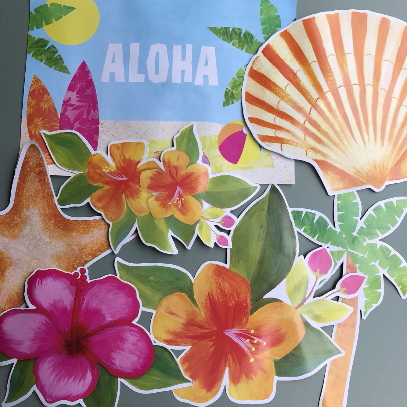 Kindergarten classroom decoration children's room pull flower birthday party decoration summer beach theme birthday party