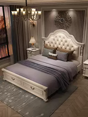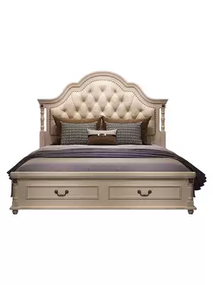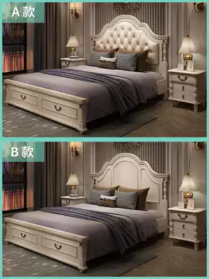 American double bed 1 8 m light luxury master bedroom European style solid wood bed soft bag princess bed rental house economic storage bed