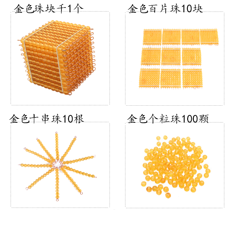 Mont's teaching aid Mengtai Thosuli teaching aids golden strings beads yellow strings beads cubic Pearl Square Everest beads ten carry