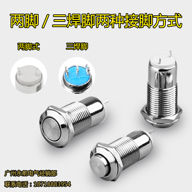 Small button self-lock self-reset 8 10mm flat head high head 2 3 only welded foot metal button switch