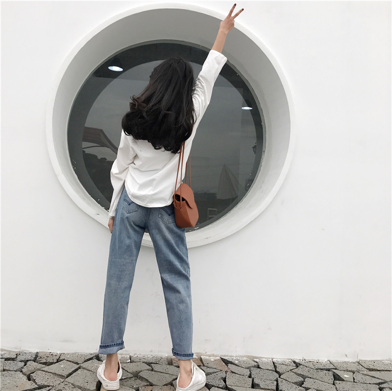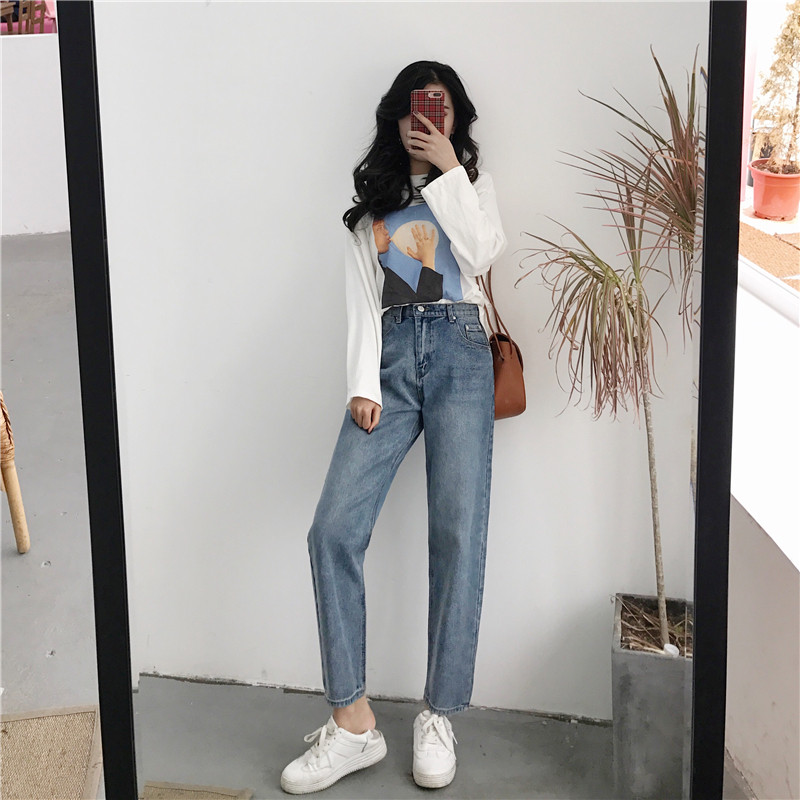 Pear-shaped body thin large size jeans female fat sister dad Harem pants mm crotch thigh thick pants 200 pounds