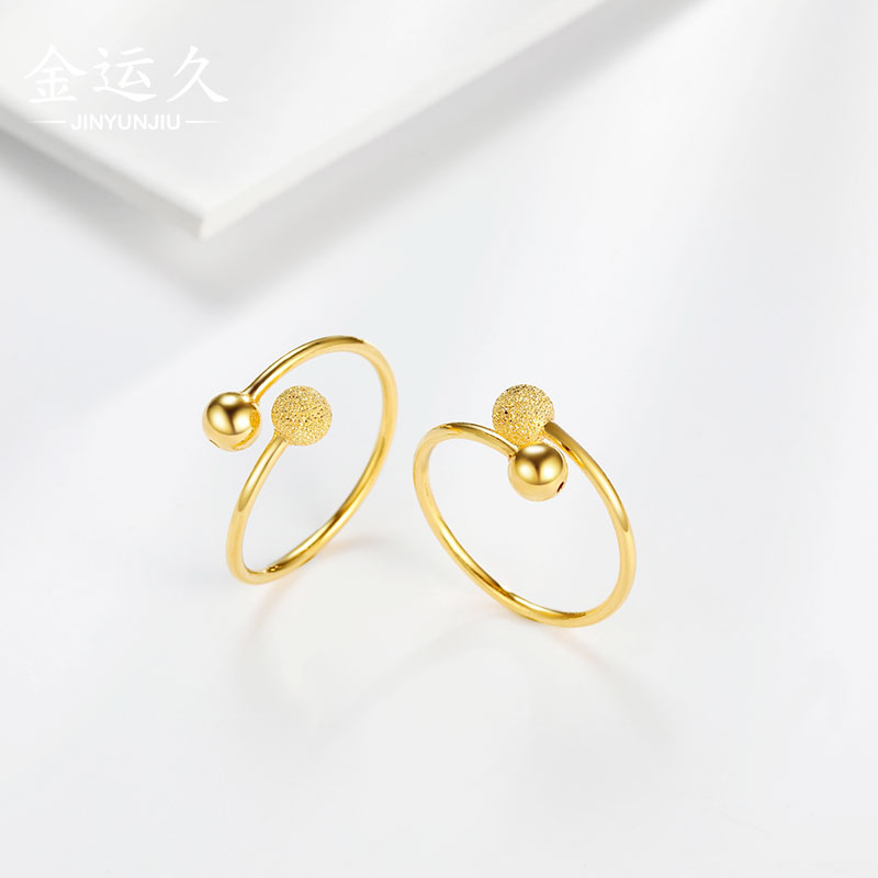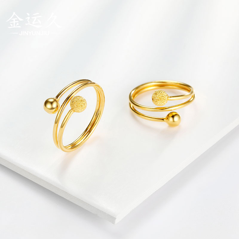 Gold ring pure gold 999 Yuanyang light bead ring Simple double bead gold ring female gold jewelry can be adjusted