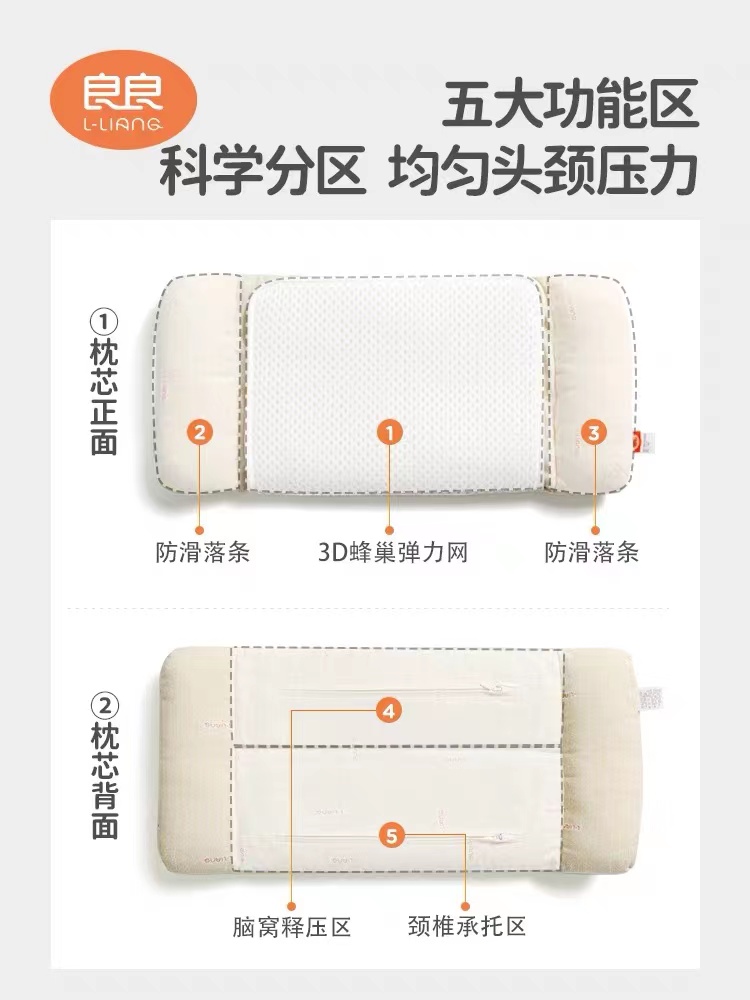 Liang Liangliang Student pillow 6-10 years old Child pillow with pillow core pillowcase Tiansilk Sesame Cool and Four Seasons Neck Pillow