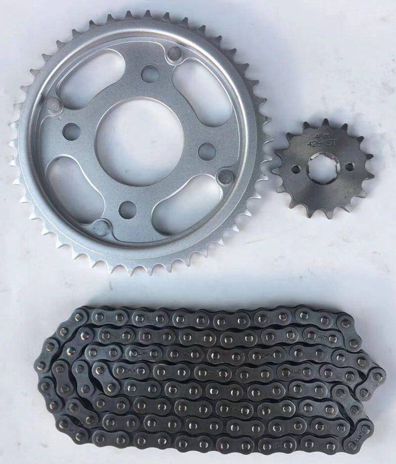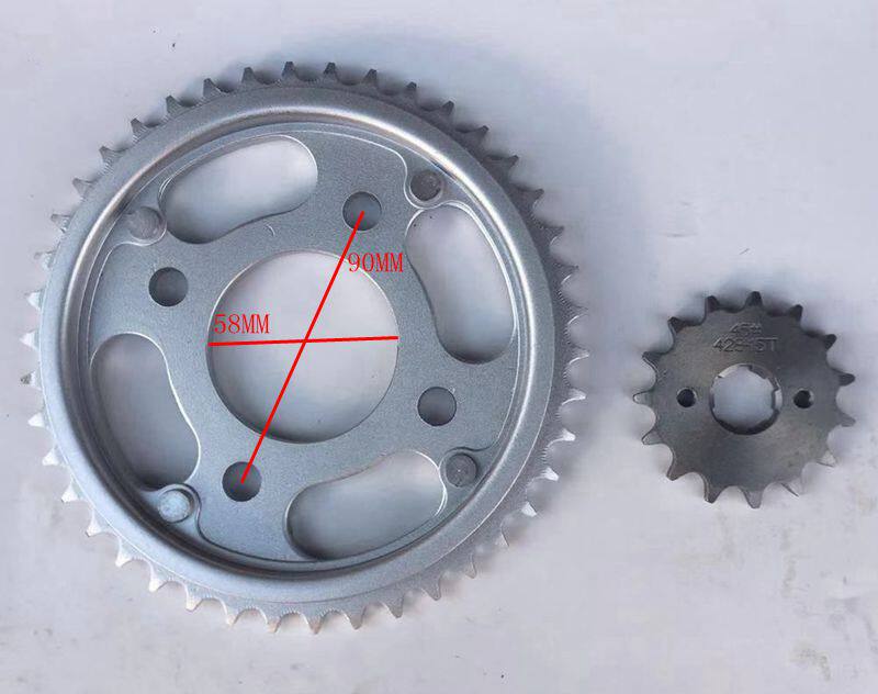 Size sprockets plus chain (large teeth 38 teeth) Size sprockets plus chain (large teeth 42 teeth)