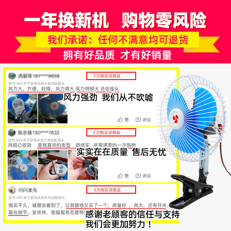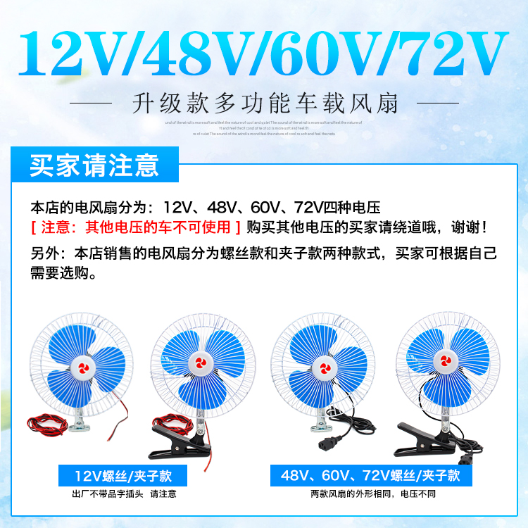 12V clip type electric fan Transmission wire 12V screw type electric fan Transmission wire 48V clip type electric fan long wire with plug 48V screw type electric fan long wire with plug 60V clip