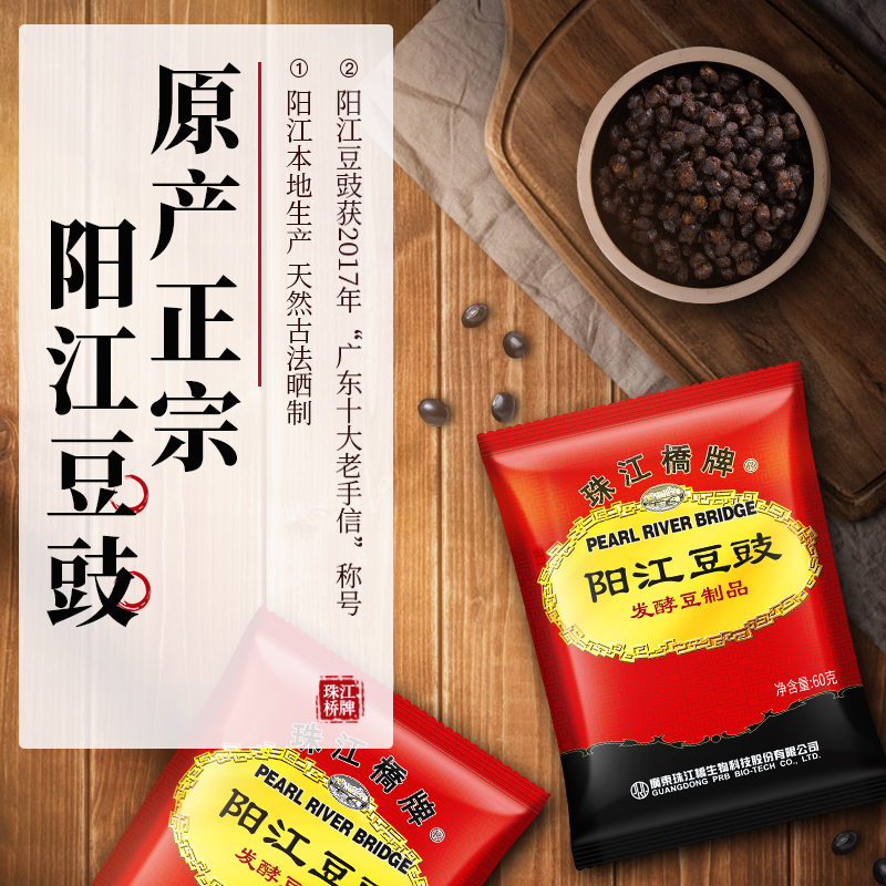 Pearl River Bridge Guangdong Yangjiang tempeh authentic specialty 60gx3 original black bean drum dried tempeh grain steamed ribs