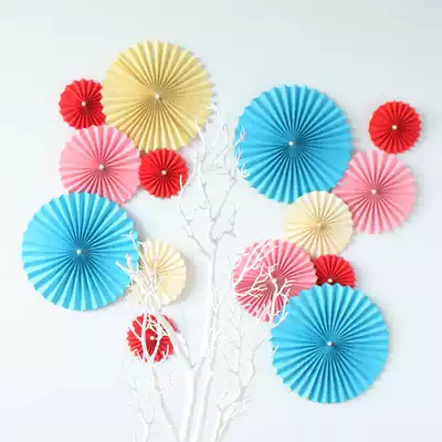 Cardboard handmade paper flower fan Three-dimensional origami fan School shopping mall store window Wedding background scene decoration charm