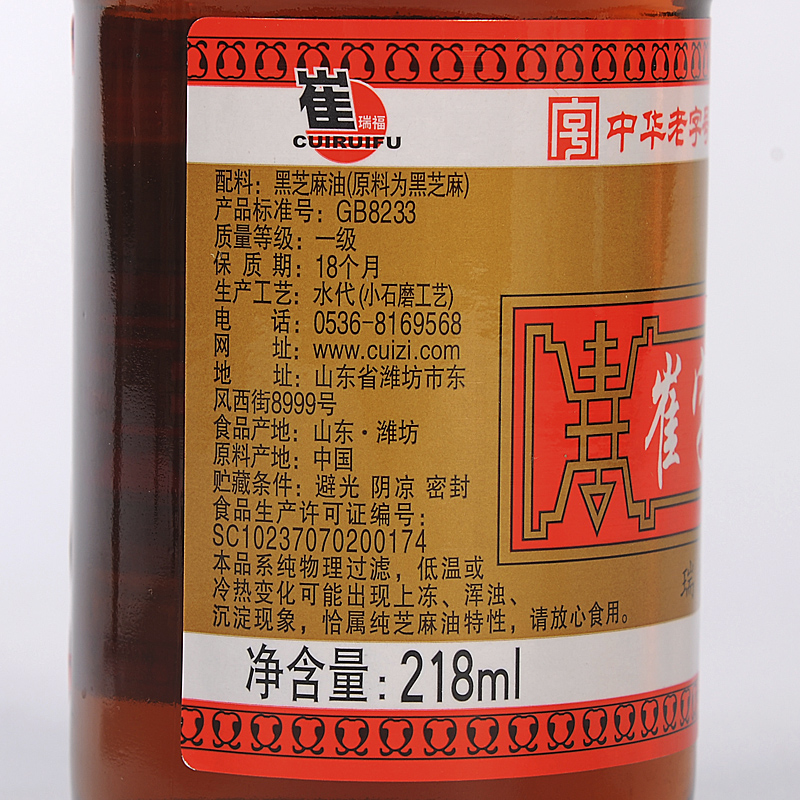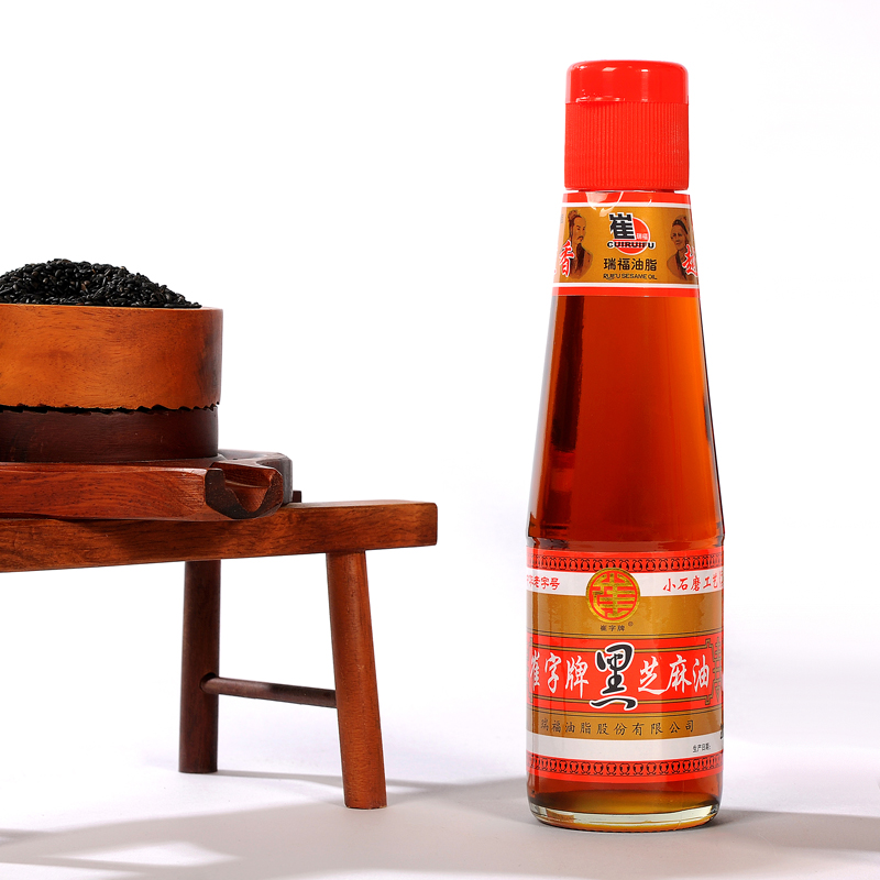 Chinese time-honored Cui brand small mill black sesame oil white sesame oil combination cold mix 218*2 bottles
