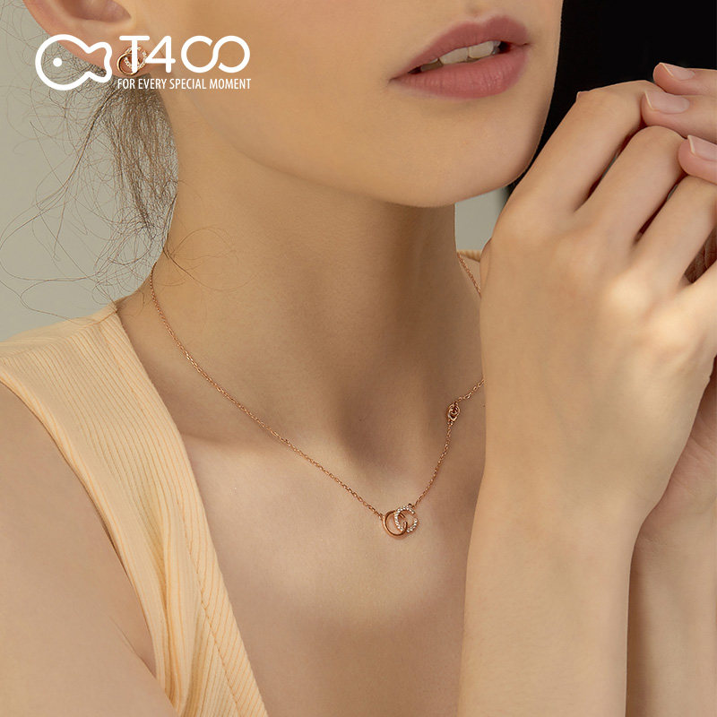 T400 double C sterling silver necklace women's summer wild 2021 new clavicle chain rose gold light luxury niche design sense